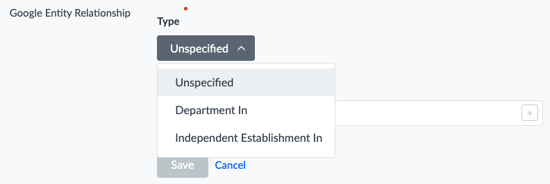 - Navigieren Sie zum Feld Google Entity-Relationship.