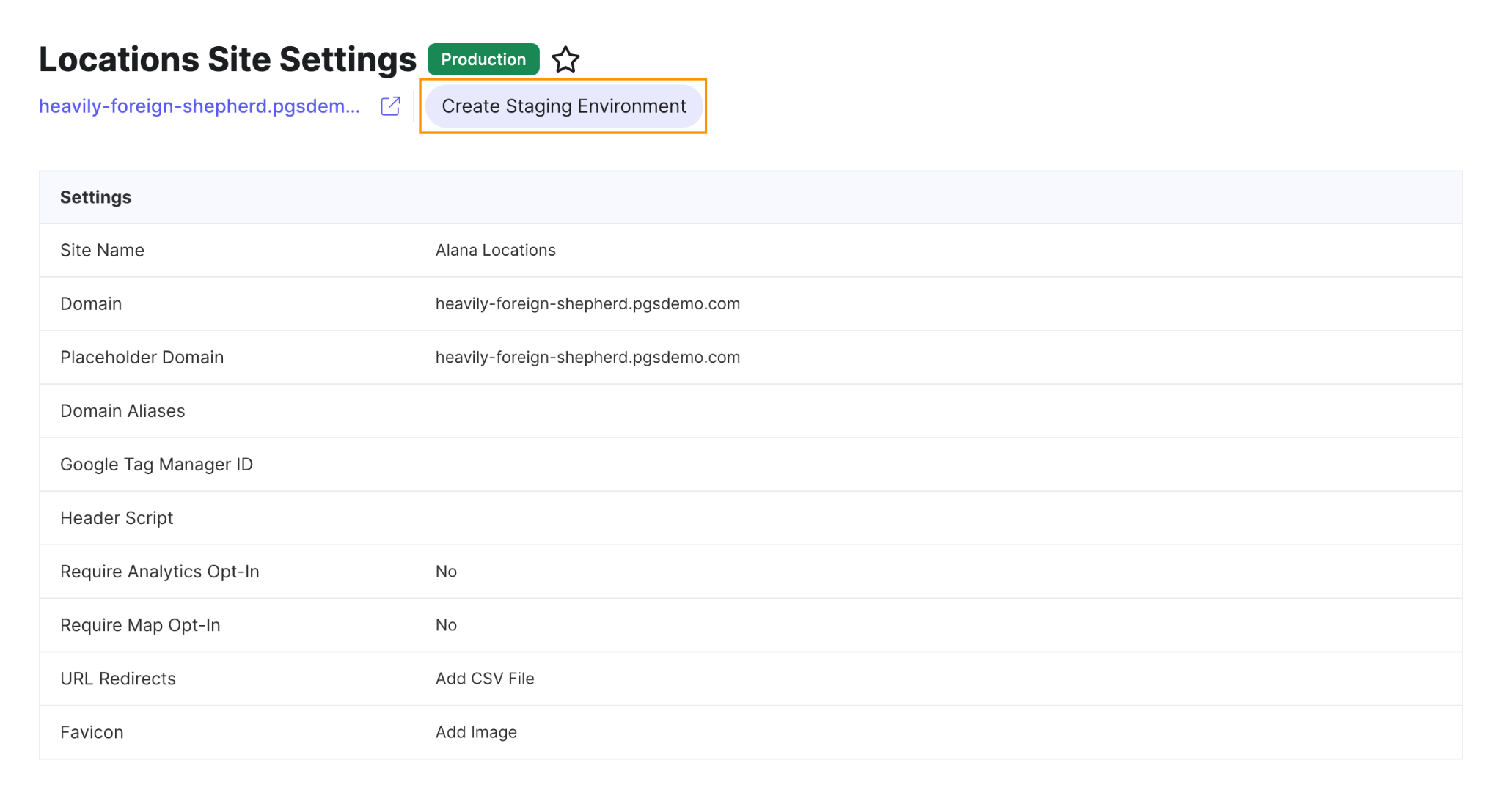 - Click Create Staging Environment.