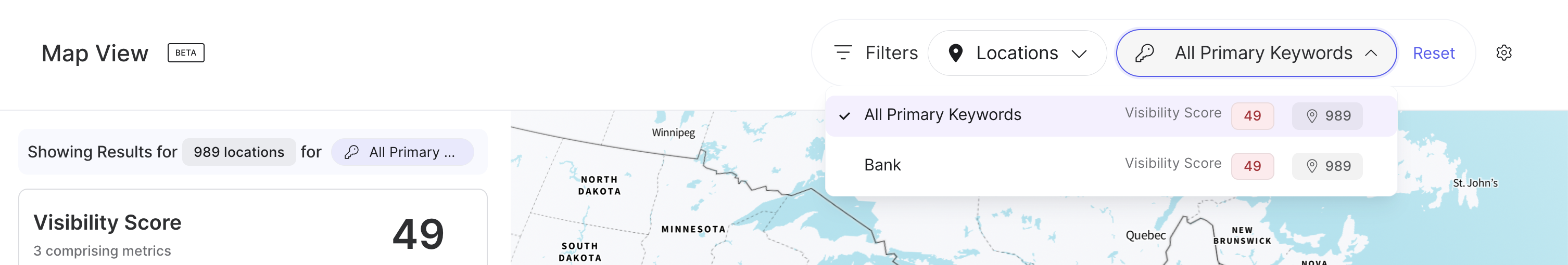 Une fois que les établissements pour lesquels vous souhaitez voir des indicateurs apparaissent sur votre carte, cliquez sur Rapport de visibilité dans le menu pour afficher un rapport en pleine page.