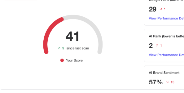 Il Punteggio di visibilità misura, su una scala da 0 a 100, la facilità con cui Google e i motori di IA riescono a trovare informazioni accurate sul tuo brand rispetto ai brand concorrenti. Tale punteggio è costituito da elementi su cui non puoi intervenire direttamente, ma che puoi influenzare perfezionando aspetti come la strategia SEO.